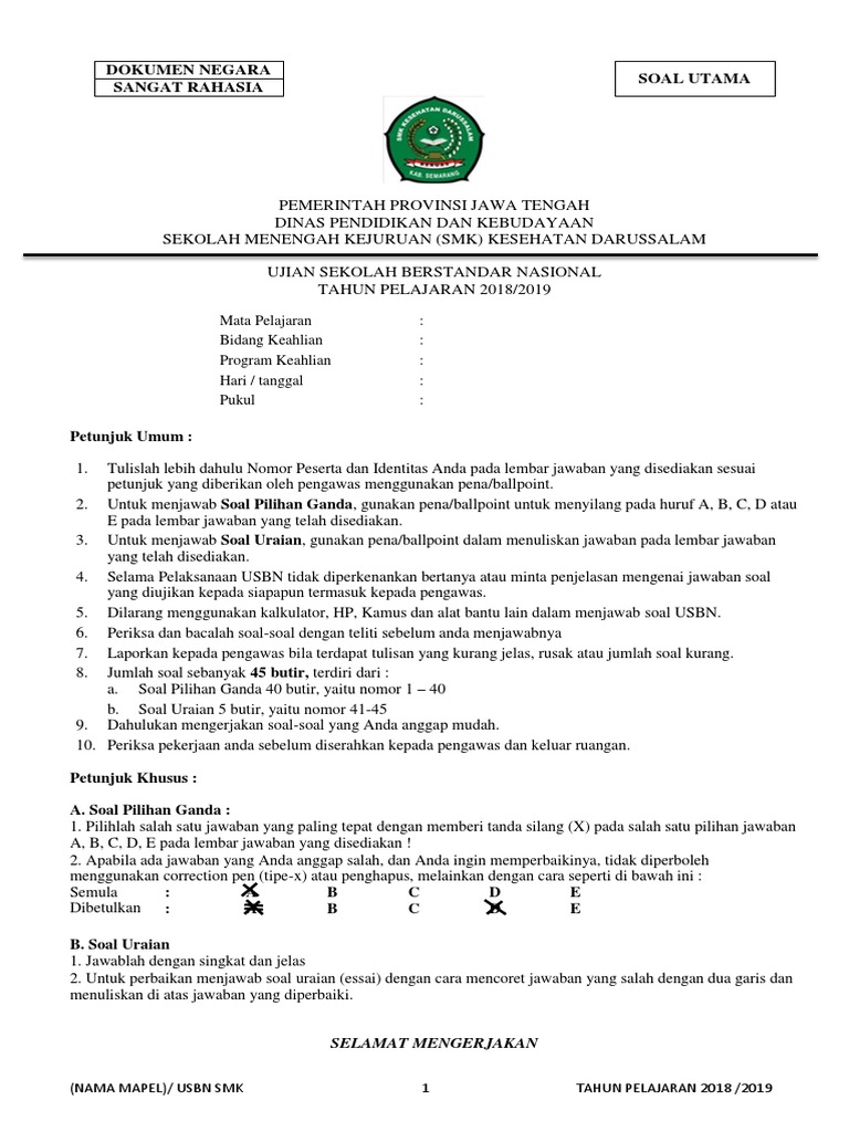 Dokumen negara sangat rahasia kab. 2,094 likes · 25 talking about this. Contoh kop soal ulangan helmi kediris. Seni budaya dan keterampilan kelas/semester : Belajar mengisi kunci jawaban dan memahami tata tertib ujian sekolah juga hal yang sangat penting, hal ini untuk menghindari kesalahan penulisan identitas. Soal ujian sekolah (us) mata pelajaran pendidikan kewarganegaraan (pkn) kelas 6 sd/mi dan kunci jawaban_soal uas pilihan ganda mapel pkn ktsp yang berjumlah 50 butir ini bisa anda manfaatkan sebagai bahan belajar untuk menghadapi ujian sekolah tahun pelajaran 2016/2017. Sebelum ujian sekolah (us) dimulai, ada baiknya kalian berlatih terlebih dahulu supaya kalian mendapatkan hasil yang memuaskan. Masyarakat dan orang tua d. Kop surat dinas pendidikan kabupaten sukabumi. More than 1 million downloads. Soal ujian sekolah bahasa indonesia sd mi kurikulum 2013 ini untuk membantu belajar peserta didik kelas 6 sd/mi dalam menghadapi ujian sekolah tahun pelajaran 2020/2021. 0%0% found this document useful, mark this document as useful. Selengkapnya berikut format sk ujian sekolah untuk jenjang sd smp sma smk tahun pelajaran 2021/2022 bentuk doc contoh dokumen sk ini dibagikan sebagai persiapan menghadapi kegiatan us tahun pelajaran 2021 mendatang bagi jenjang sd smp sma dan smk.